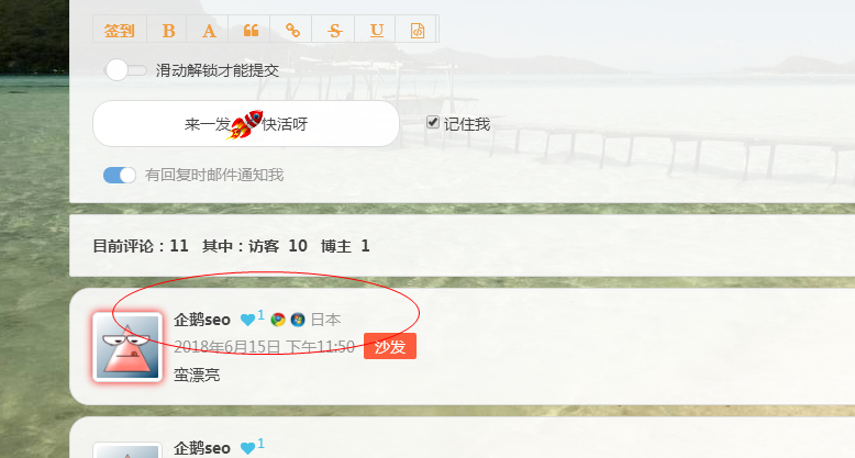 现在我们只需要将以下代码放到指定位置,就可以显示了。本站使用的知更鸟,在begin/inc/function/comment-template文件内(这里顺便补充一下,那个“博主”的位置在begin/inc/function/function.php里面),找到