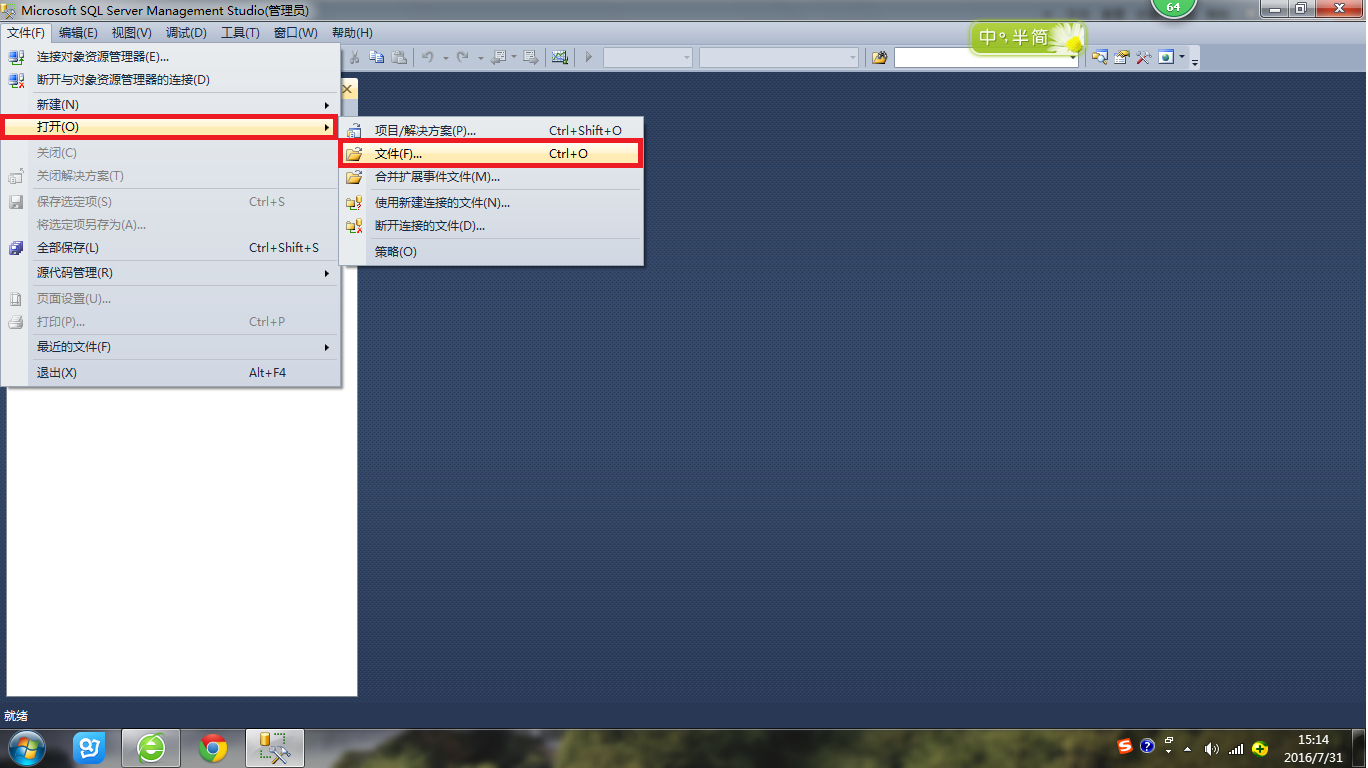 2 通过:文件==》打开文件,打开刚开始导出的脚本文件。