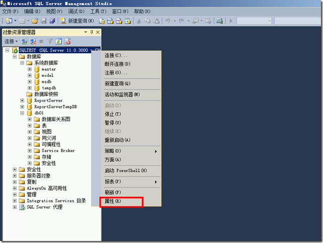 2、登陆后在老服务器数据库中点击属性,打开“数据传输”如图,