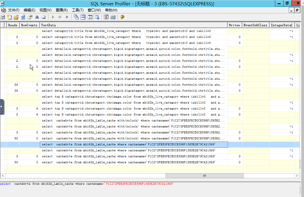 可以比较直观的看出reads,writes,roucounts,显示较多的sql语句: