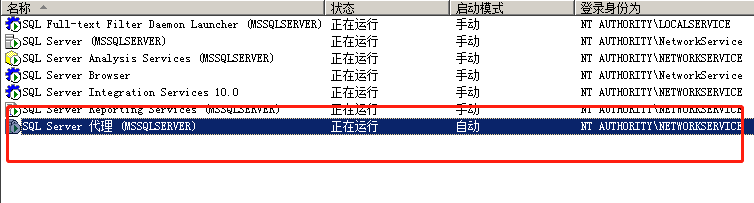 5,打开主库上的sql Server配置服务,把sql Server代理服务设置成自动,并且启动,我这里是全部都是启动的