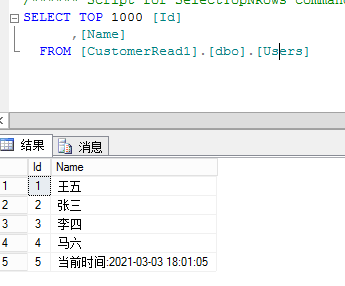 3,准备一个主库,这里假如主库数据库名字为:Customer,里边有一张Users表