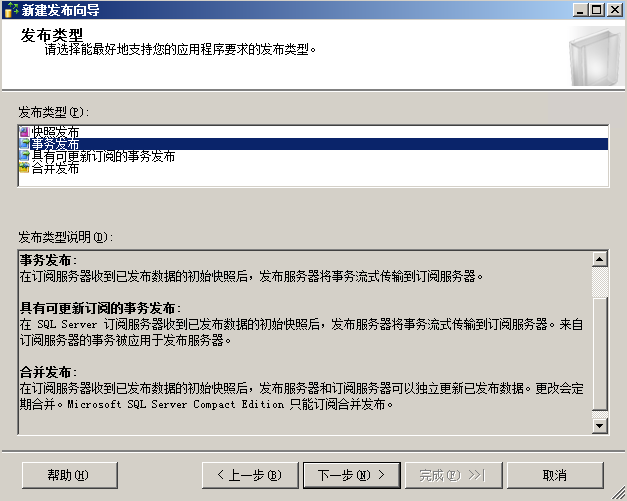 事务发布:是一种接近实时地从源到目标分发数据的方法;