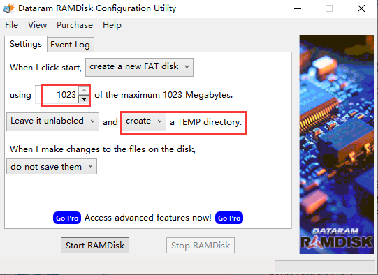 对于32位Windows操作系统,RAMDisk的最大限制为大约2.85 GB