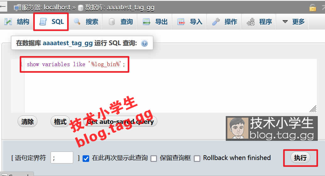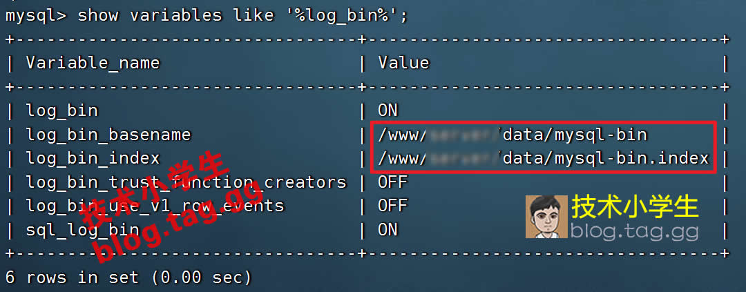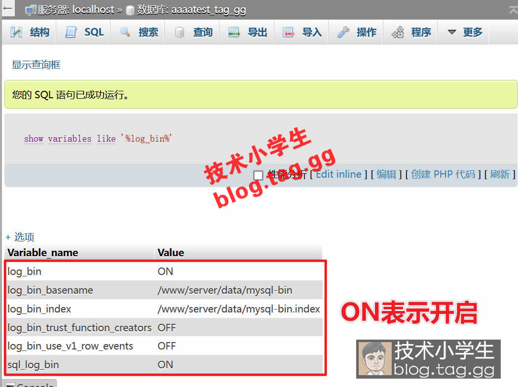 执行结果如下: 2、登录mysql直接查看:show variables like '%log_bin%';
