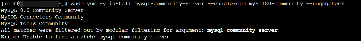 All matches were filtered out by modular filtering for argument: mysql-community-server