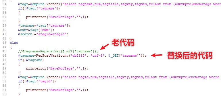 即可正常打开(此方法可以解决绝大部分的中文tag不显示问题,若修改后还不显示,可能是其他方面问题了)$tagname=RepPostVar(iconv('gb2312', 'utf-8', $_GET['tagname']));