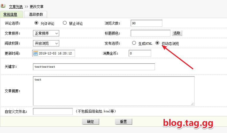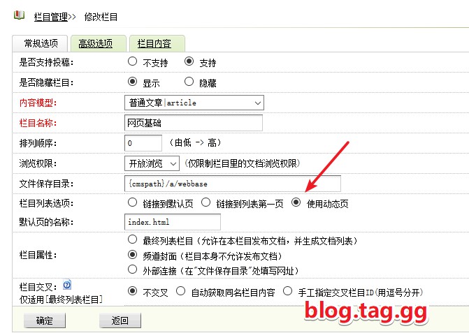 栏目和文章页面设置为动态请参考如图: