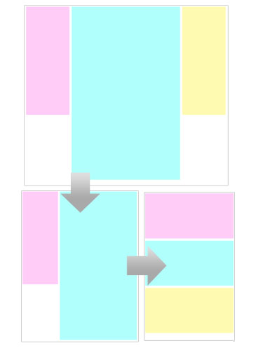 一个三栏布局的,在不同的尺寸下,变为两栏,再变为一栏
