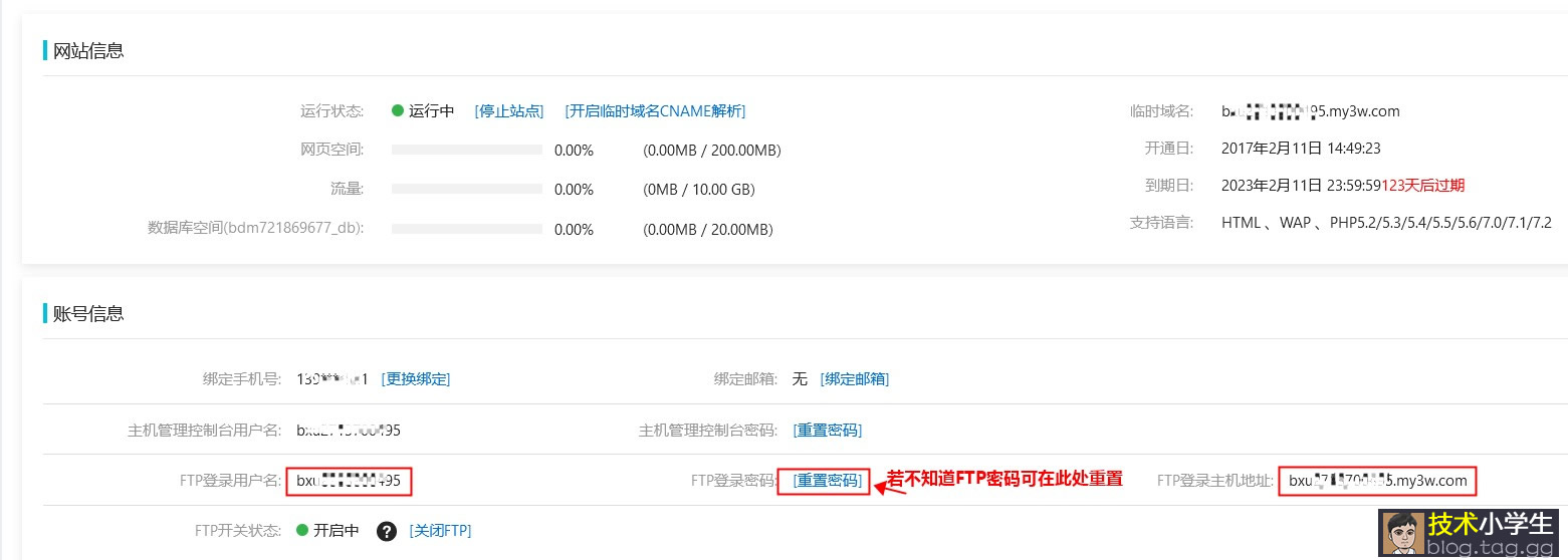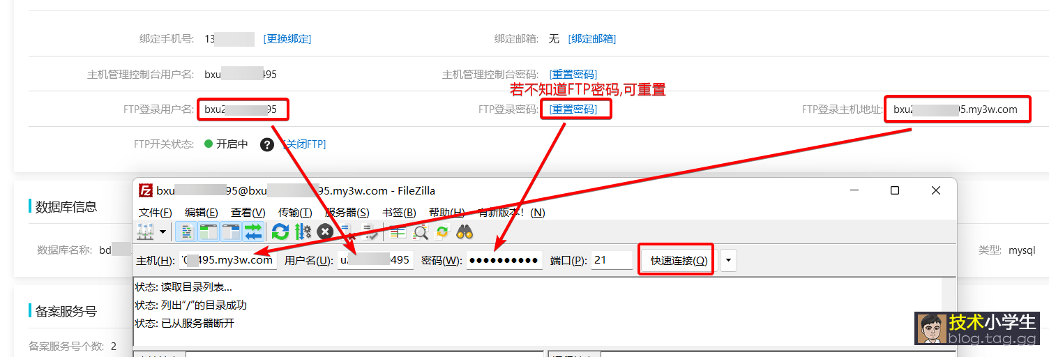 查看FTP登录信息: