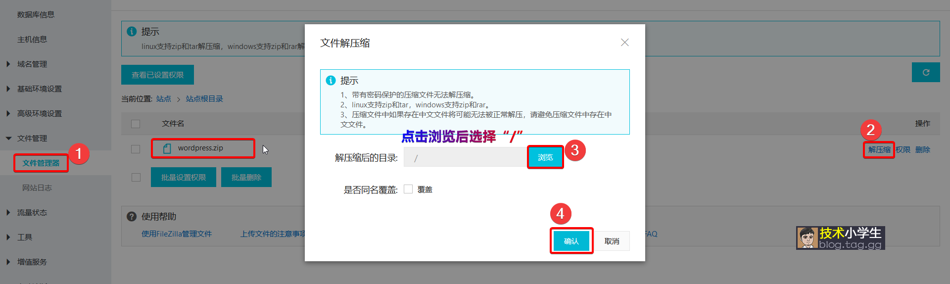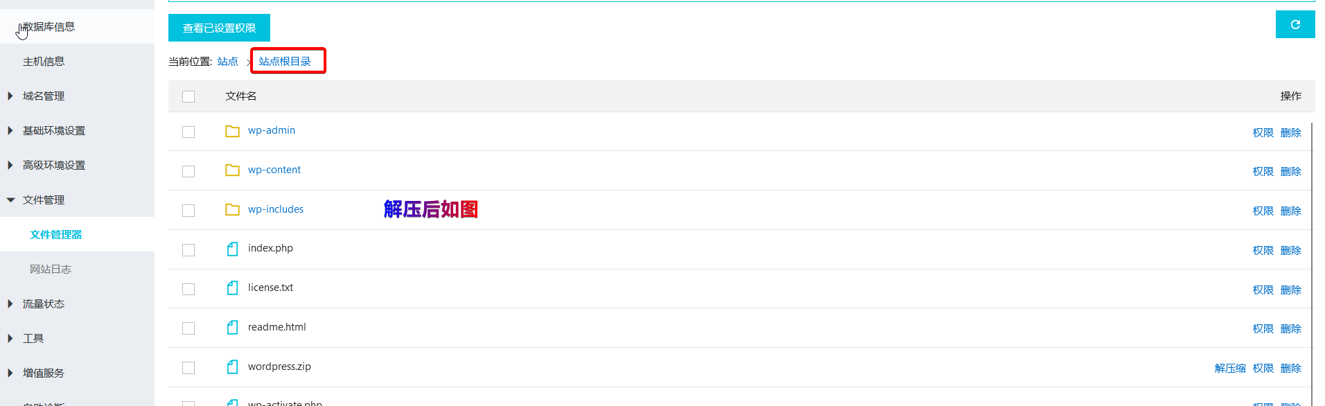 4、在主机控制面板中解压压缩包 解压后如图: