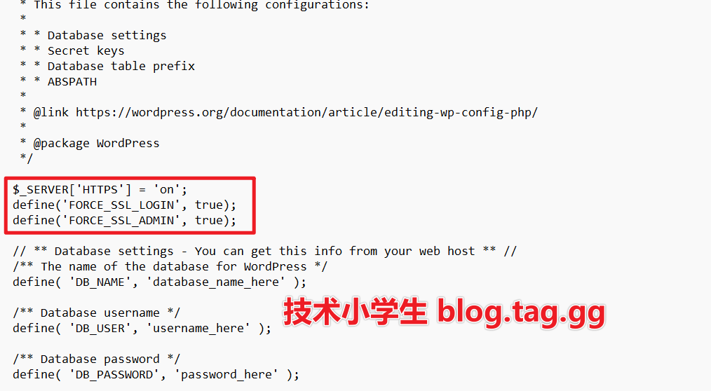 例如打开“wp-config.php”后在如图位置添加代码保存上传即可$_SERVER['HTTPS'] = 'on';