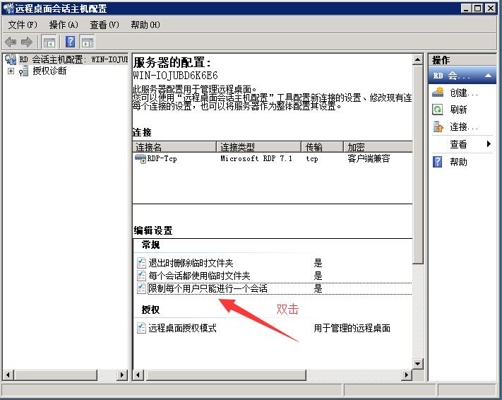2、双击 限制每个用户只能进行一个回话