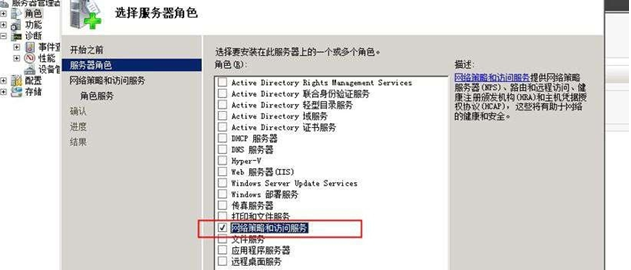 3.然后选择“网络策略和访问服务”,点击“下一步”,如下图所示: