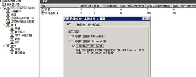windows 2008 操作系统,两块网卡,一块网卡是私网地址,用于内部通信,不能和互联网通信,一块网卡是公网地址,可以直接和互联网通信。