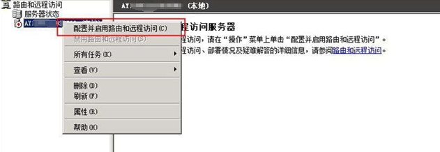 10.然后右击路由和远程访问中的服务器,选择“配置并启用路由和远程访问”,如下图所示: