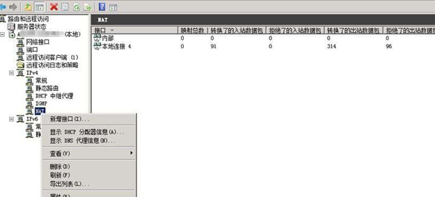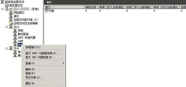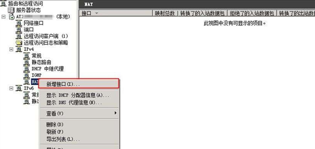 18.选择IPV4,右击“NAT”,选择“新增接口”,如下图所示: