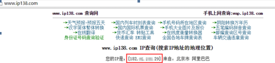 (1).通过www.ip138.com查看本地访问外网的IP已经是服务器的IP地址,如下图所示: