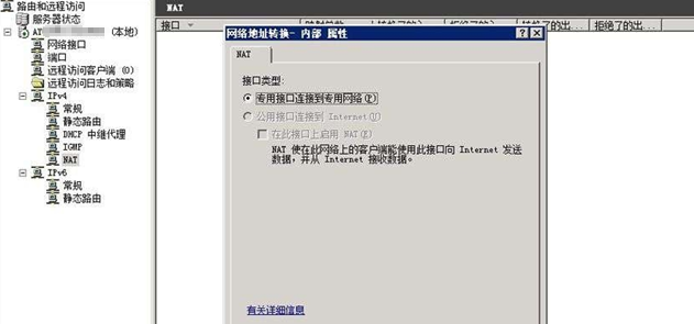 23.选择“公用接口连接到Internet”,并勾选“在此接口上启用NAT”,如下图所示: