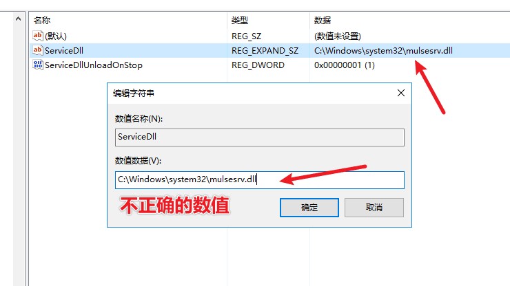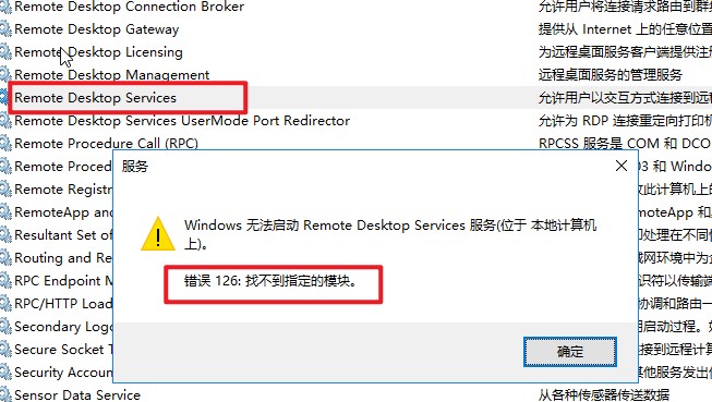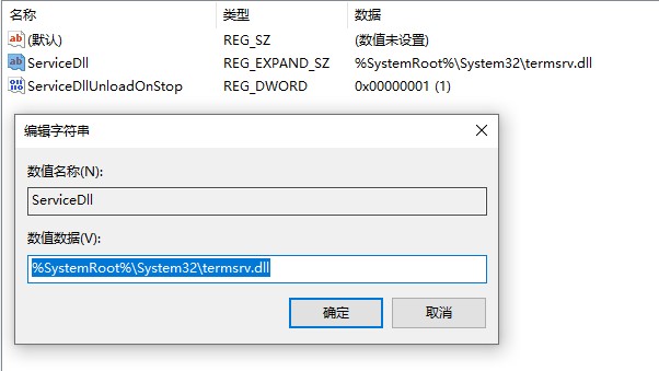 若本身有ServiceDll 选项,那么请检查该数值数据中值是否正确,本次我的问题就是有ServiceDll选项,但dll文件路径不正确,需要改成 %SystemRoot%\System32\termsrv.dll 然后保存在重启即可正常。