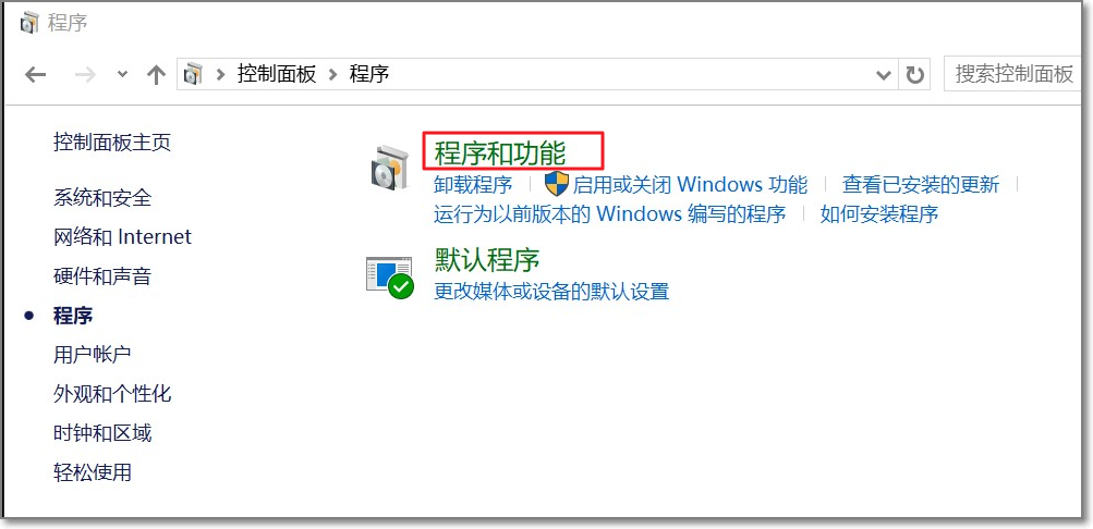- 单击 程序 > 程序和功能。