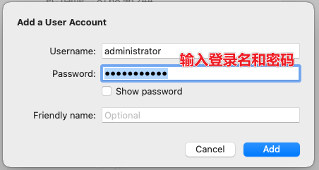 上面设置后每次登录都需要输入用户名和密码,如果不想每次连接都输入用户名和密码,可以参考如图添加用户即可。 添加后再连接即可,每次连接就不用输入登录名和密码了。