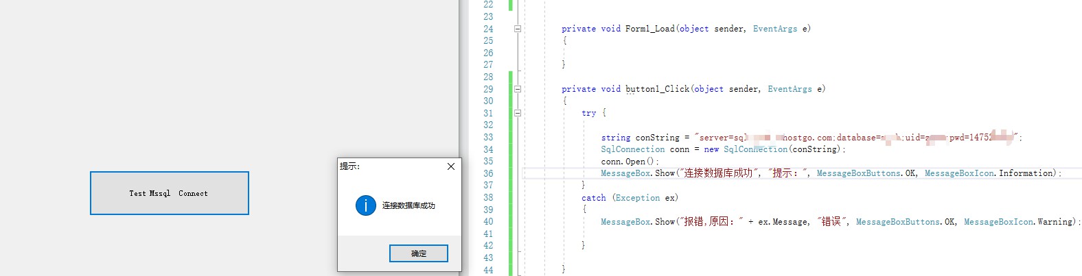 MessageBox.Show("连接数据库成功", "提示:", MessageBoxButtons.OK, MessageBoxIcon.Information);