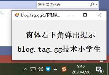 运行程序后右下角会显示该窗体,并且显示和关闭后都有效果