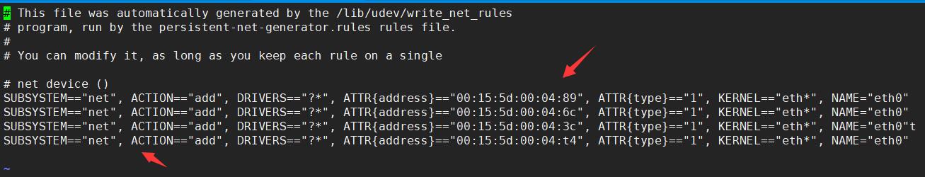 2、解决方法:直接登录虚拟机,vi /etc/udev/rules.d/70-persistent-net.rules 然后将如图中的都删除,然后重启linux即可解决,重启后该文件会自动获取最新的网卡信息