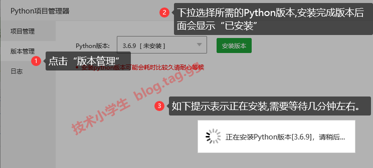 3、所需版本安装后,可以开始配置了,方法如图,安装需要稍等几分钟