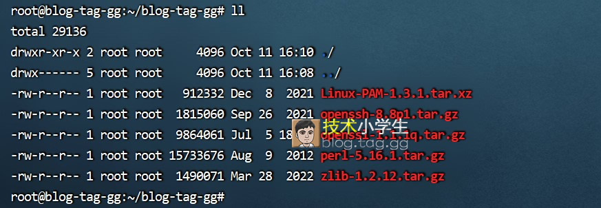 zlib-1.2.12.tar.gz,perl-5.16.1.tar.gz,Linux-PAM-1.3.1.tar.xz,openssl-1.1.1q.tar.gz,openssh-8.8p1.tar.gz。