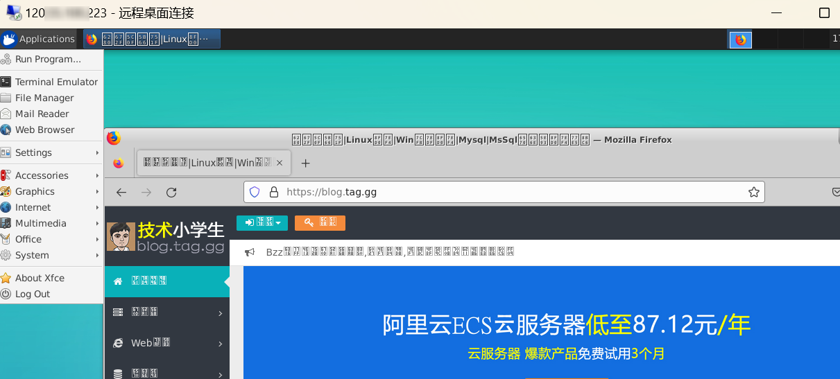重启xrdp服务:echo xfce4-session >~/.xsession