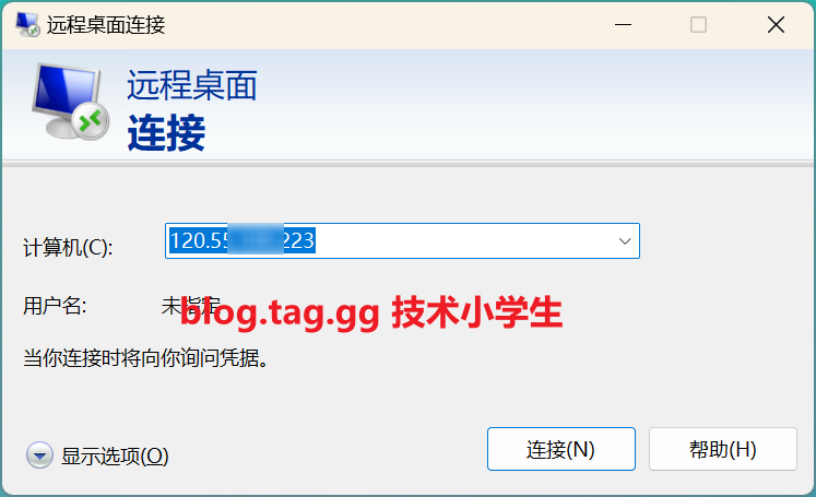 打开windows系统的远程桌面服务输入ip点击确定,然后输入root账号和密码即可连接。
