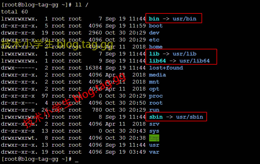 1、“bin”目录默认是软连到:“/usr/bin”、“lib”目录是软连到“/usr/lib ”、“lib64”是软连到“/usr/lib64”、“sbin”是软连到“/usr/sbin”的。