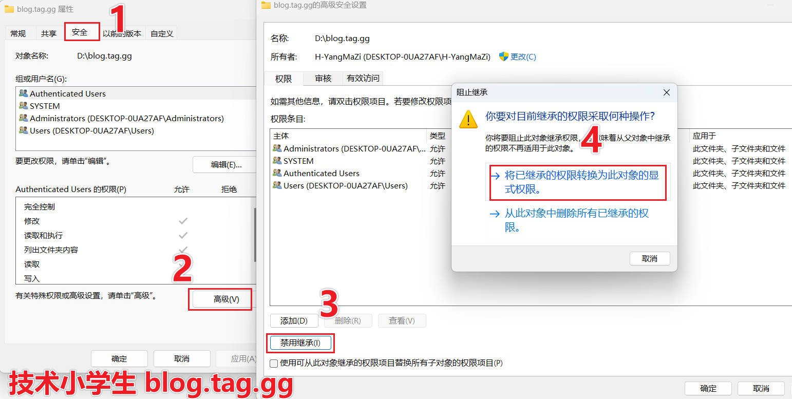 找到存放私钥的文件夹,鼠标右键点击,选择“属性”,然后切换到“安全”选项,参考如下步骤设置。 添加后在登录即可。