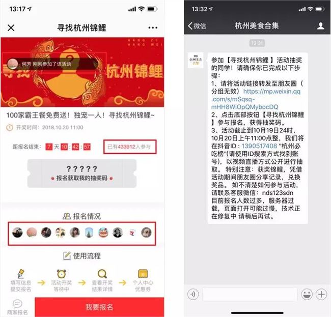 这次杭州锦鲤抽奖活动的发起和推广都是用微信进行的,而开奖则用抖音进行视频直播,这样一来,既显得抽奖公平公正,又在公众号涨粉之外涨了一波抖音的粉丝,可以说非常机智了。
