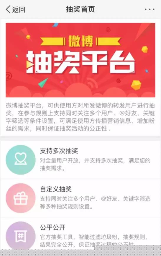 4)营销工具抽奖容易实现。目前已经有很多第三方抽奖工具,比如微信微博的抽奖助手,微信的小程序,都可以作为第三方承载工具。