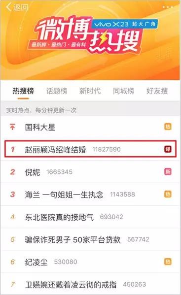 #赵丽颖冯绍峰结婚#话题搜索量达到 1183 万,甩开热搜第二 1000 多万。