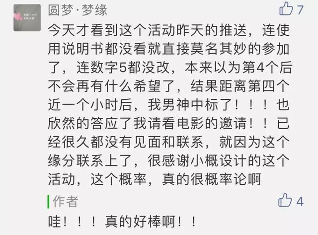 最令他们印象深刻的是,后台有人跑来告诉他们,说自己发出来的实验被自己的男神抽中了,对方答应了她请看电影的邀请。