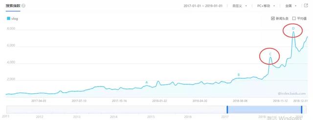 △2017.1.1-2019.1.1 vlog百度指数变化