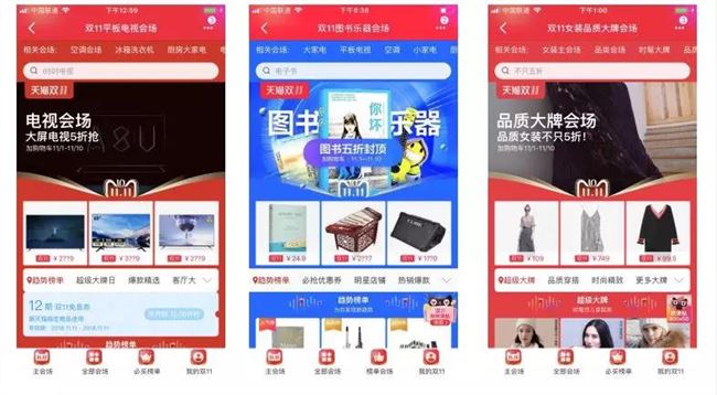会场的优点在于,当用户对某一个品类的商品感兴趣时,会场可以有效提高选择和购买的效率。例如,我想在双十一期间买书,那么我可以进入图书乐器会场,查看有哪些好书、有哪些书店,而不用在不同书店之间来回跳转页面。