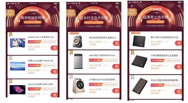 相比于会场的复杂,榜单更加简单粗暴,通过商品热度告诉用户哪个产品更好。背后的逻辑是利用其它用户的购买行为来为商品背书。
