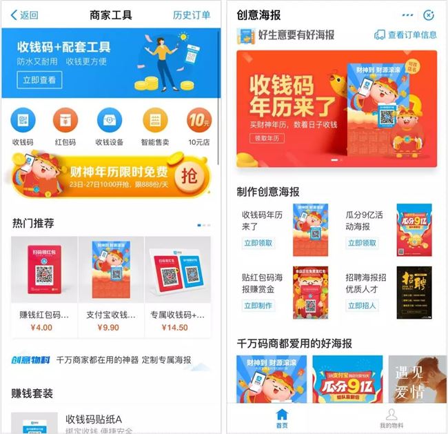 最贴心的是,支付宝连活动海报都帮商家设计好了,商家可以选择免费下载图片、自行打印,或者购买其他海报获赠活动海报。