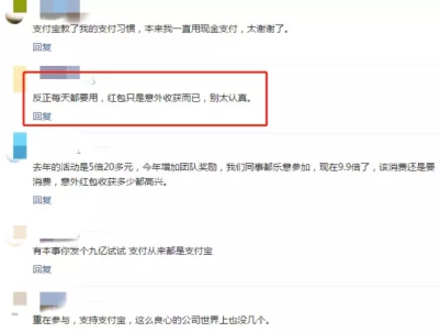 虽说此次活动最终能拿到几百元以上红包的用户寥寥无几,还有一些用户表示不愿意再参加此类活动了。但不可否认的是越来越多的年轻人都比较钟爱于使用花呗,享受这种先消费后买单的形式。我想这才是支付宝的高明之处!