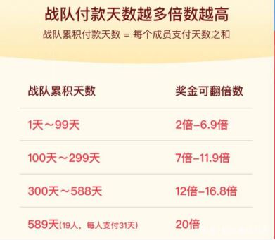 l 战队支付天数达到589天也就是19人都支付31天,那么战队可以获得高达20倍的奖励。