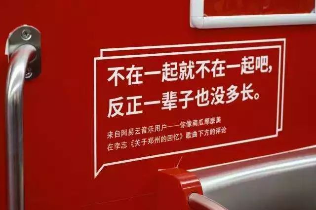 3月20日,网易云音乐包下杭州1号地铁站和江陵路地铁站,发起了一场名为《看见音乐的力量》的营销活动,从四亿多的乐评中选出点赞数最高的5000条,又筛选出了85条评论,印在海报上贴满了地铁站。