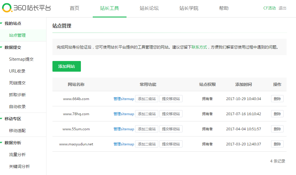而我提交的网站分别是:www.664b.com www.78hq.com www.55um.com www.maoyudun.net 2.前往360论坛反馈,在360论坛发帖的时候请注意一定要按板块进行反馈,360网站不收录应该要发在360搜索板块,发帖内容具体请参考我反馈的截图