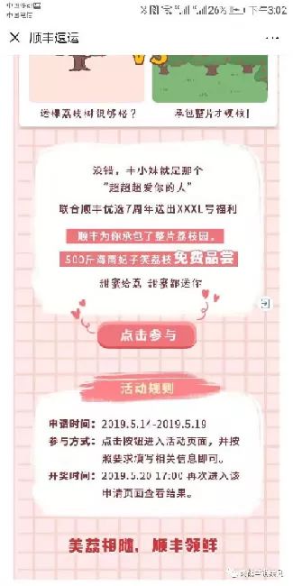 无意间浏览了顺丰速运里面的一篇文章《520甜蜜给荔,500斤荔枝免费送你》好奇心促使我点击进去看了下。