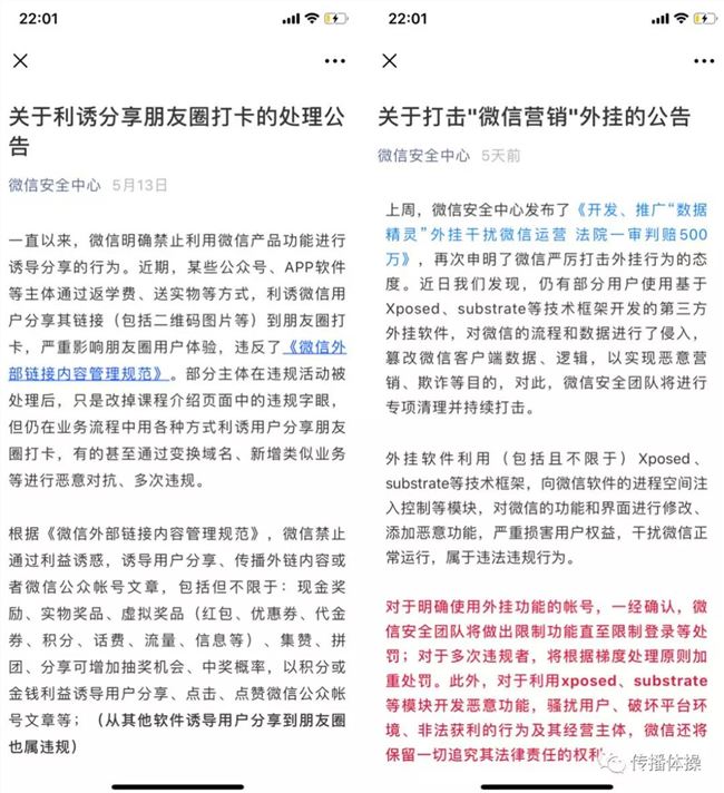5 月中旬,微信官方发文重申对裂变营销的封杀, 6 月中旬,微信发出公告打击营销外挂,整个线上教育行业哀鸿遍野。不少人也会发现,使用相关微信自动化工具软件的账号更容易被封号了。