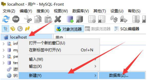 11、把鼠标移到localhost,右键单击,选择新建,新建数据库;